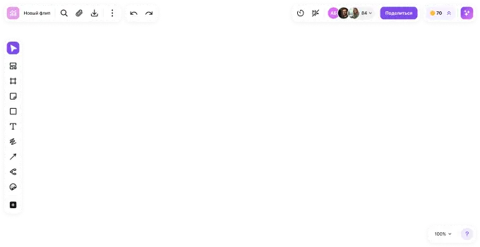 Мозговой штурм? Ретро? План на месяц? flip подойдёт под всё. Мы подготовили шаблоны на любой случай, чтобы вам не пришлось начинать с нуля. А если хочется по‑своему — белый лист всегда рядом
